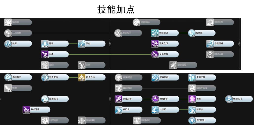 刺客属性点不太够用,需要有所取舍,具体加点见下图。
