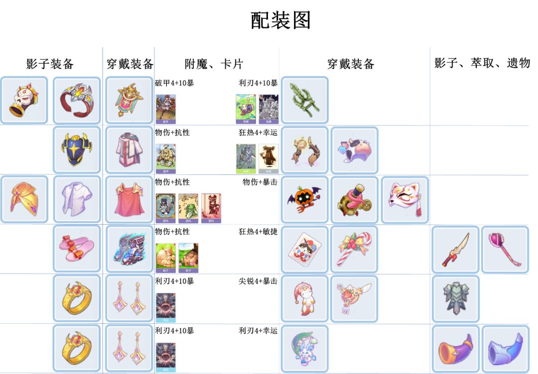 穿戴装备选择暴击+穿刺的搭配,影子装备目前只有披风副手有词条,因此有衬衫+分特的极致输出和邪骨+时之蓝的生存词条两种搭配,至于其他部位的影子,只是暂定,具体还需要观望词条情况。