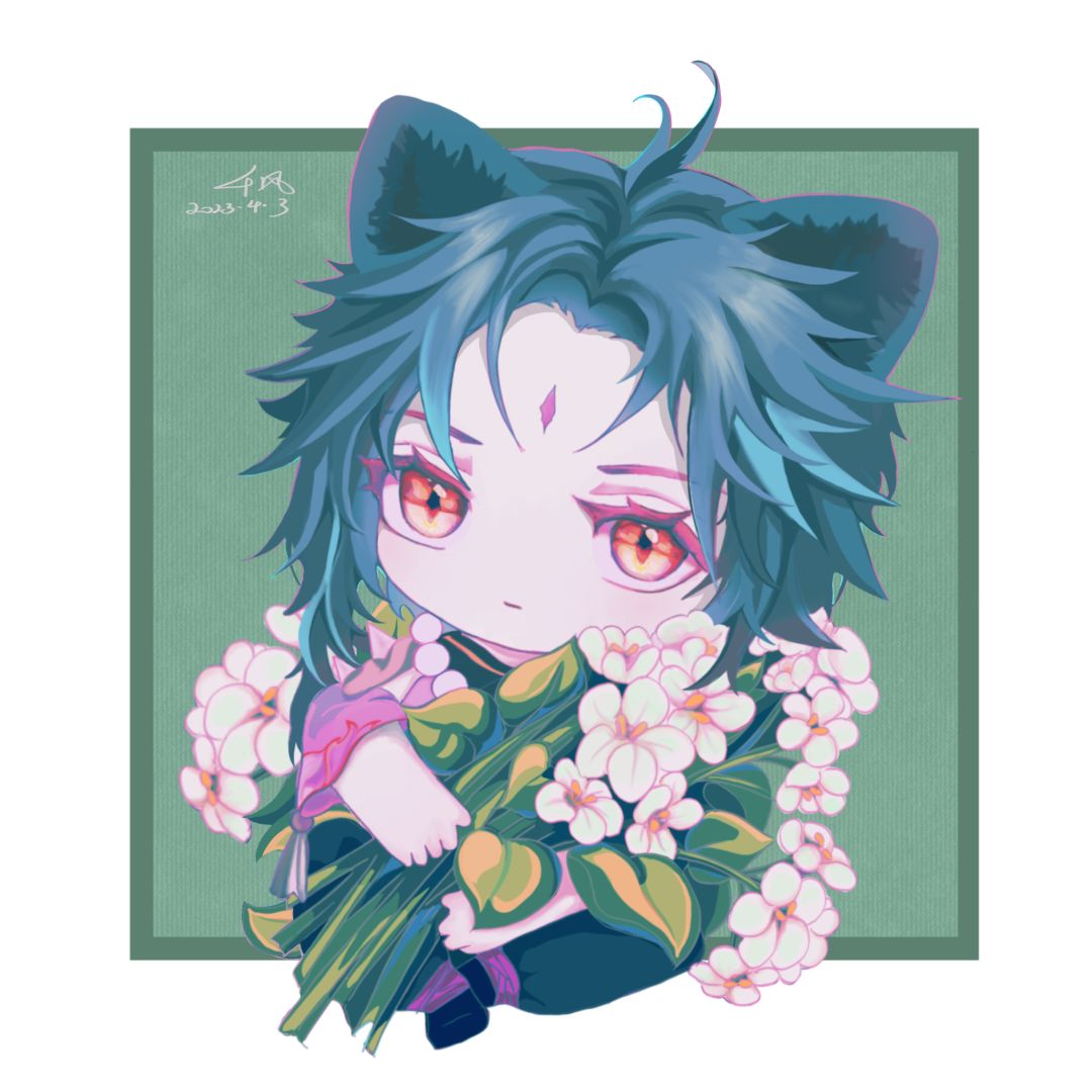 画了一只抱🌸🌸的魈猫猫