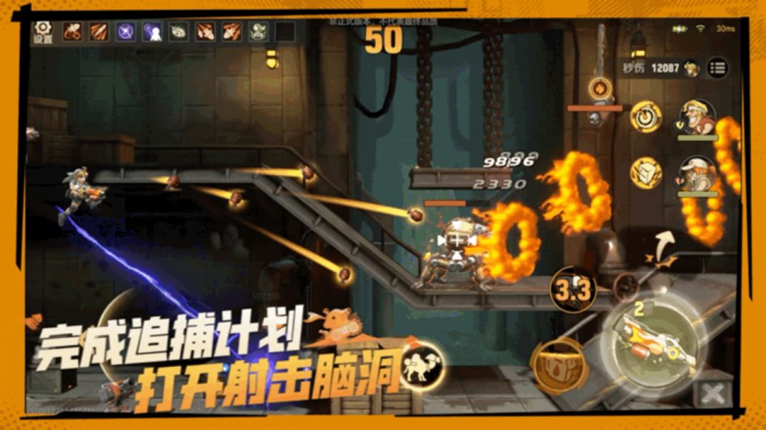进入闯关就开始不断烧血,考验自身的走位与生存极限的同时不断积累经验触发暴走时刻,在无限弹药加超高射速的加持下,让无数敌人瞬间灰飞烟灭!