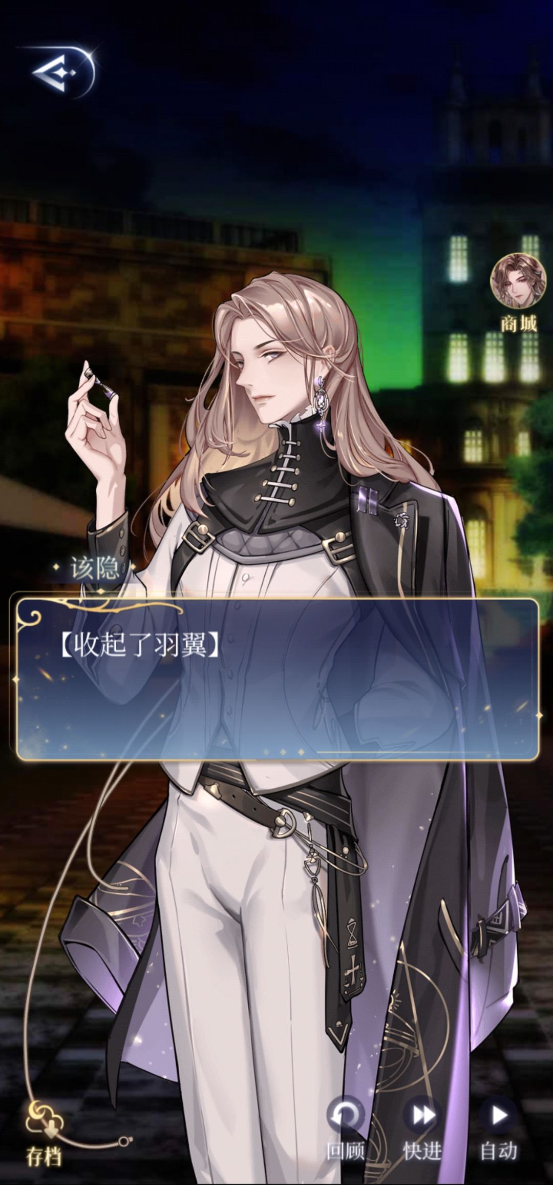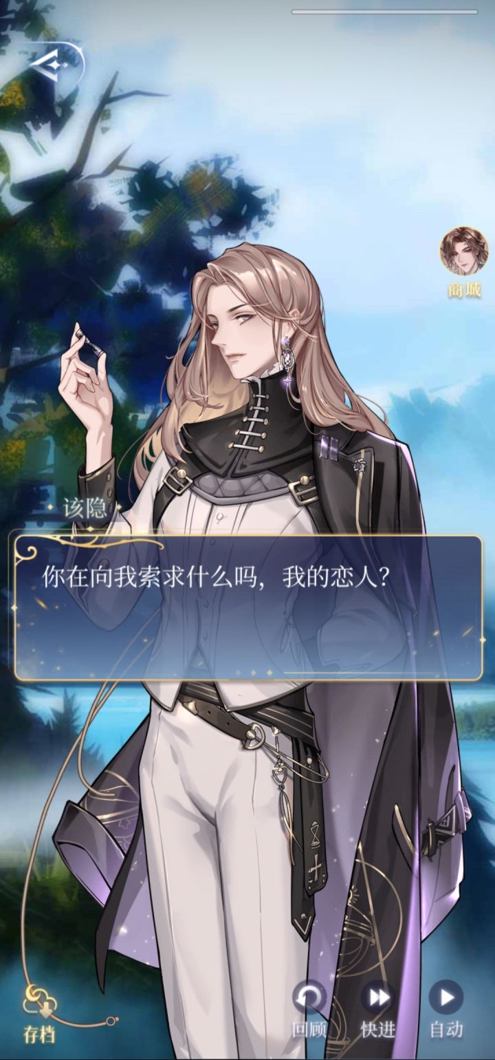 该隐警惕梵优的那段剧情一开始我看到觉得很难过,觉得为什么你会对“我”也这么不信任,“我”又不会对你做什么,又刷了几遍突然觉得他大概终于把“我”放在眼里了。该隐在梵优面前那种完美的假面已经碎掉了,他的真面目美丽又危险。他努力经营的那种完美链人的人设也塌得差不多了,少了这张假面梵优在他看来已经变成不可控因素了。