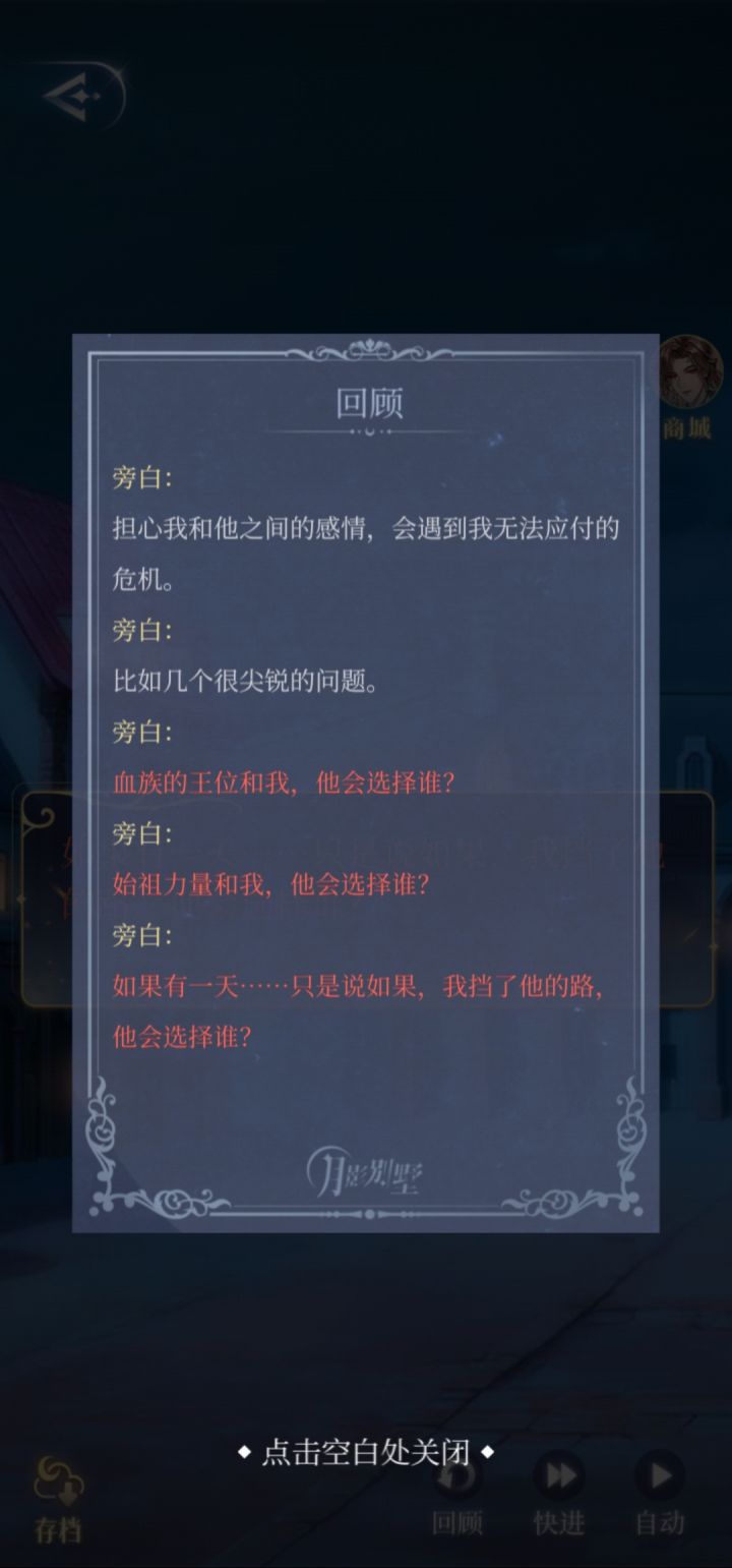 梵优误打误撞(被引导)去了阿卡拉德,我觉得这大概是一个梵优从单纯迷恋该隐这个游戏角色,到彻底喜欢上该隐本人的契机。这段经历是梵优了解该隐作为一只鬼他的现实生活,了解血族的机会,也是该隐开始对梵优真正上心的一个过渡。