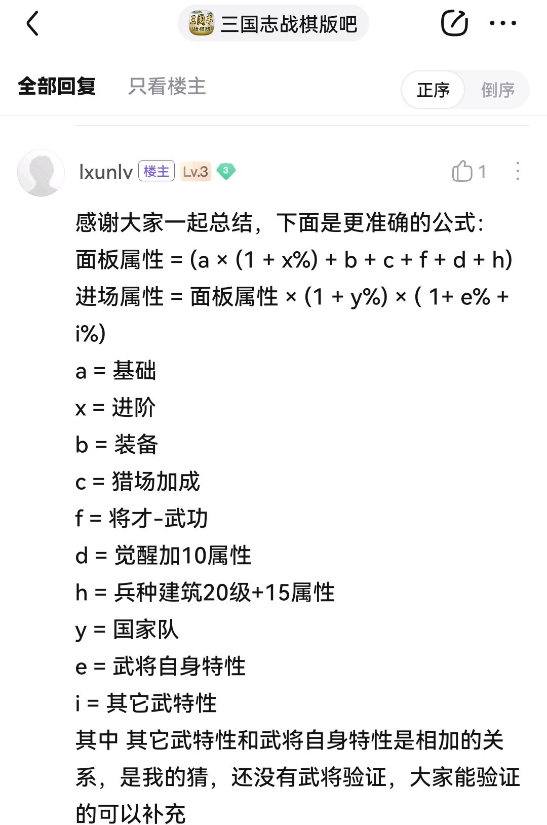 1,本人计算测试出来,兵刃伤害和武力成正比,和统御成反比(谋略伤害攻击端智力,防御端75%智力25%统御)。因此武力加15%会增加15%伤害,统御增加15%是相当于15%免伤。