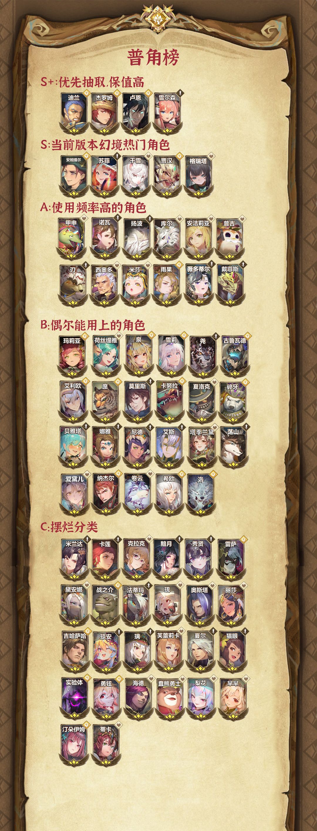 S+和S角色现在版本幻境属于是必练,具体加值多少,看每周幻境作业参考
