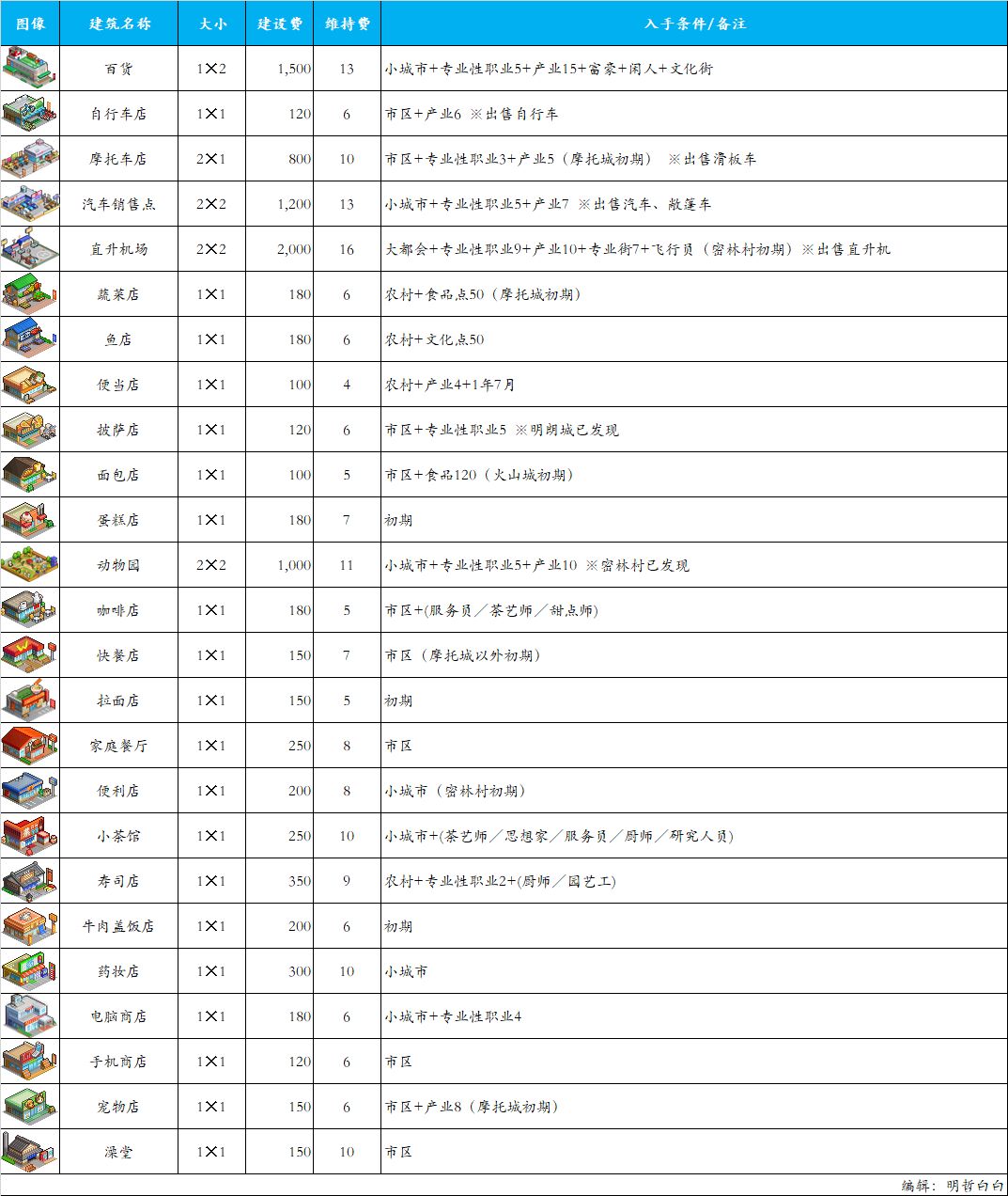 都市大亨物语 图鉴(产业篇)