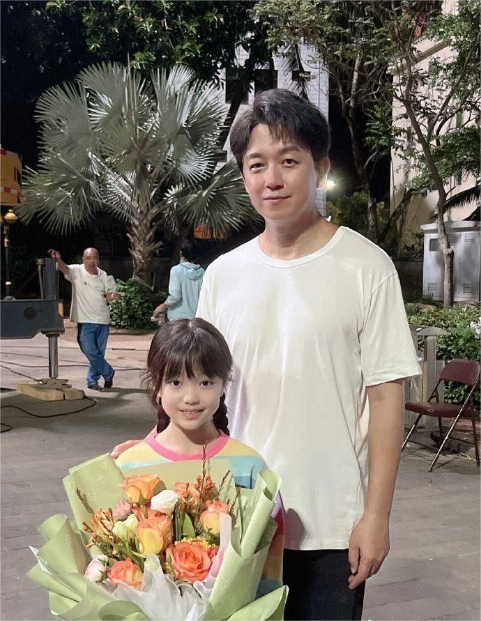 潘粤明新剧《消失的十一层》路透合影。在片中饰演副局长曲江河的潘粤明同饰演其女儿曲七月的小女演员一同合影,潘粤明随后转发该条微博并称“后悔咋没露胸肌呢真是。”
