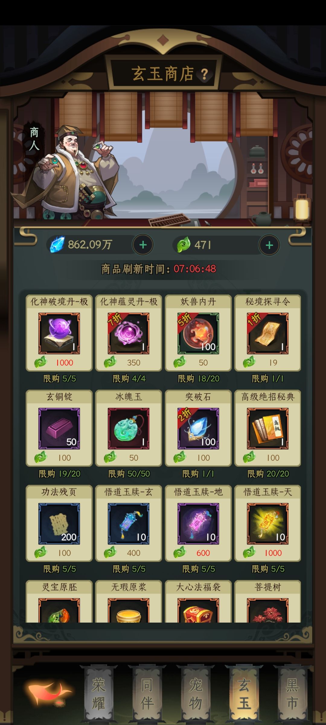 玄玉商店就不要买了 元婴期游历可以 拿到