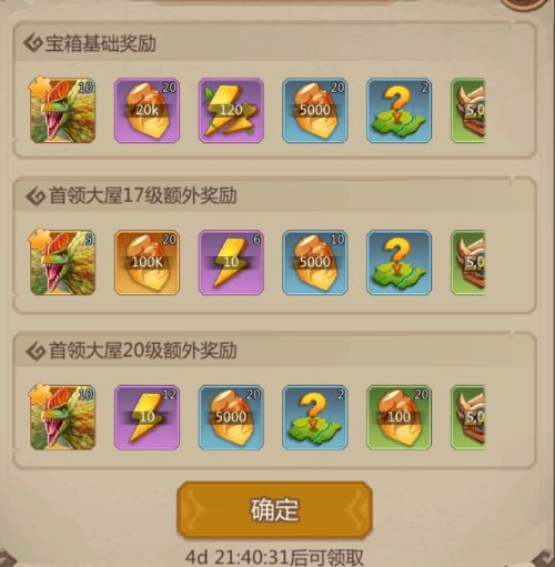 2、继续提升大屋等级至20级,服务器大佬不多的情况可以尝试冲击一下首领大屋等级的排名奖励,大佬较多的话大屋升到20级就可以了。我们需要留一些加速和资源去提升我们的部队。