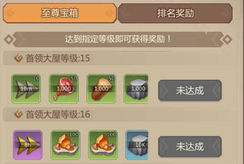 4、以首领大屋升级、射手训练为主进行提升,领取限时奖励。