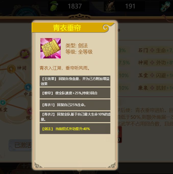 主要培养的侠客我推荐以下几个,一代掌门代代是神,游侠职业,外功技能,全能型,辅助最佳。先看图