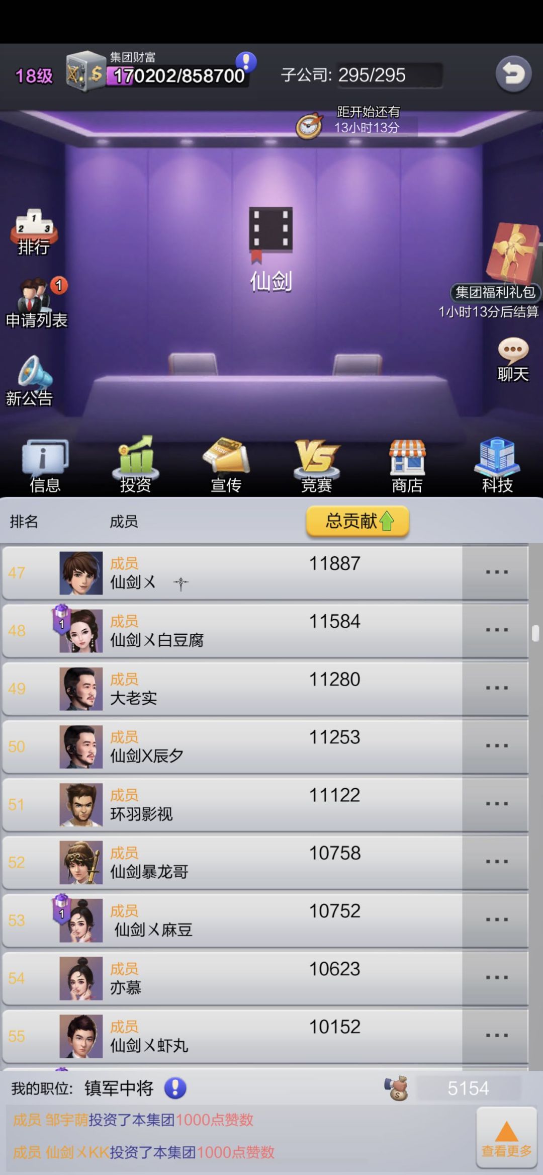 新加入集团只需要每日投资1000点赞或10钻石(不建议投资过多钻石),获得集团贡献币。