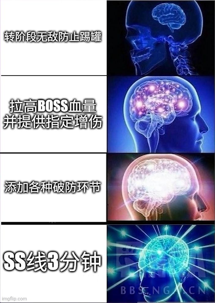 作为和超机一个时代的共斗boss,超狐延续了新时代的各种机制,转阶段锁血让无敌的踢罐队伍重伤倒地,作为设计师设计给能力光体系的对策本(现在倒地有多少人能组顶配能力光啊_(:з」∠)_),但是归根结底,无论是光PF还是光fever在超狐中都只能算是辅助或者次要体系,没错,无敌的光至尊又是最推荐的队伍