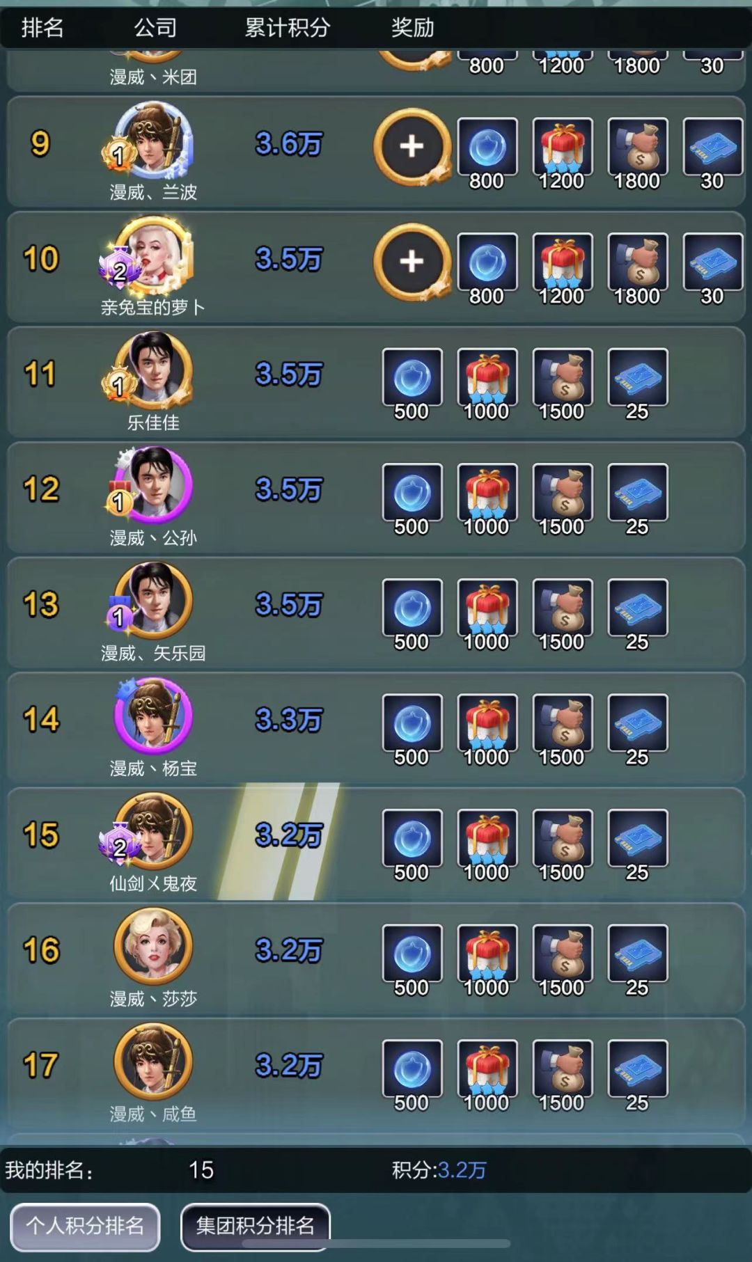 新手期因为个人排名无法进入前300,所以尽量找不满5人,星级稍低,集团人多的城市,晚一点拍摄(过早拍摄可能会被挤出前5)。