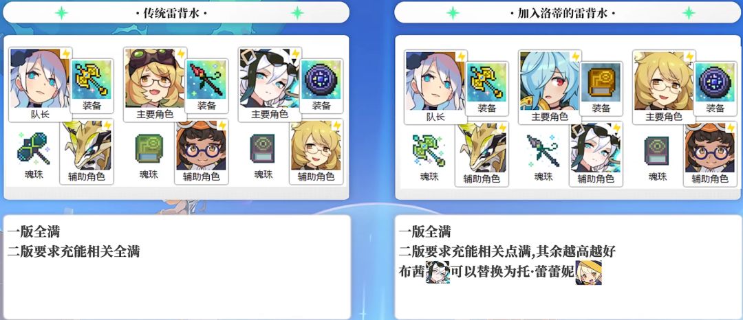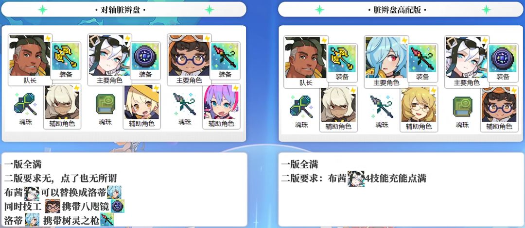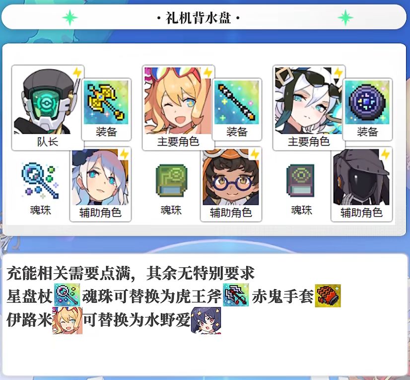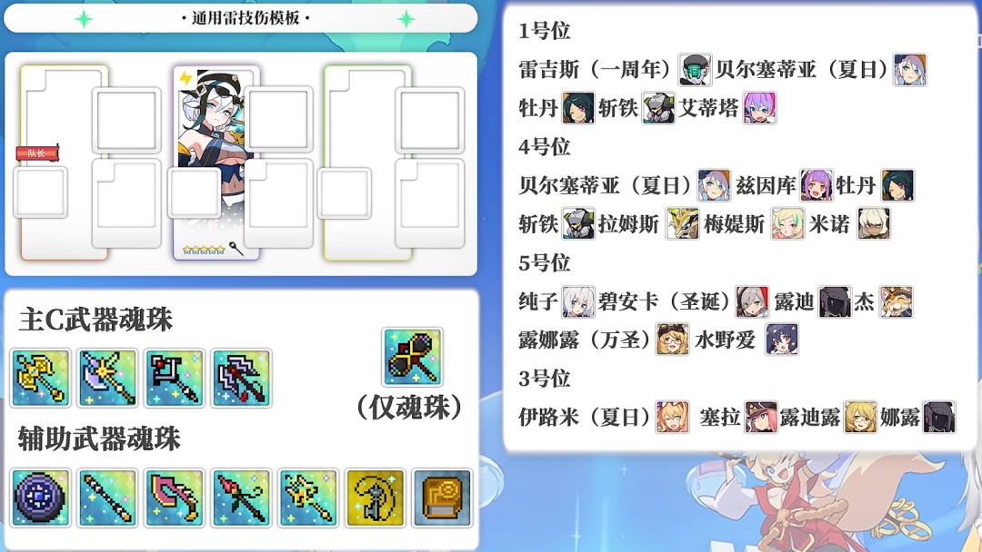 由于春牛出色的辅助效果,所以通杀了所有技伤体系的队伍成为了唯一一个放在固定位置的角色,其余位置小伙伴们可以根据自己的box情况进行选择