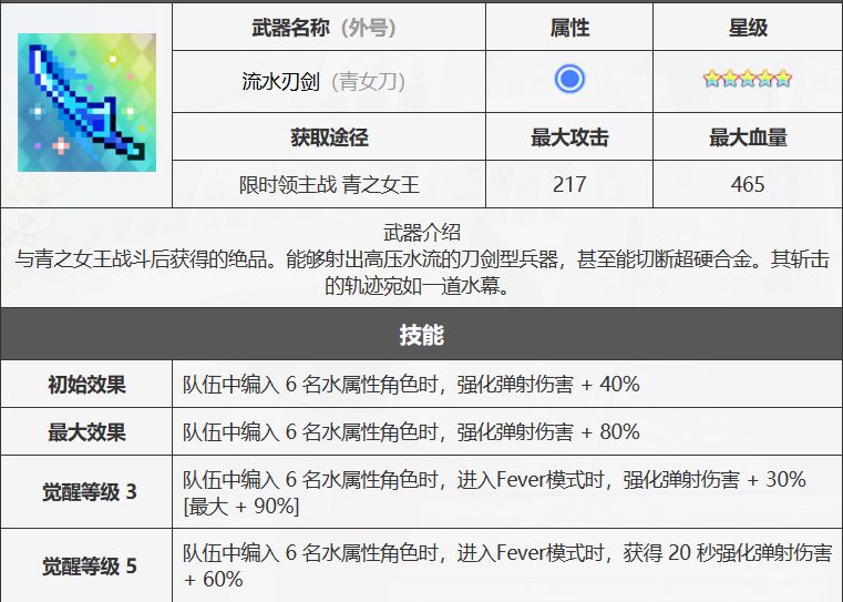 青女刀作为水fever的武器提供的加成还是不错的,但是水fever体系进fever的问题没有解决的情况下,在所有武器中的梯度也只能往下调