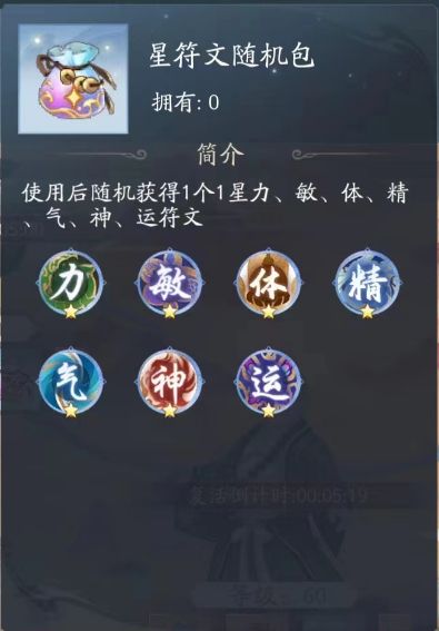 当各位的等级升到60级的时候你会发现打完60级世界悬赏BOSS会掉一个叫做1星符文随机包的东西,还有当你的仙盟商店达到6级你会发现店里有卖一个随机2星符文的商品,打开这两种袋子会随机获得1个力、敏、体、精、气、神、运的符文,然后你会发现,哦豁,用不了?背包里面虽然可以找到一个叫神祝的空间可以看到却无法操作这类东西;这时候不要慌,等你再过几天升到64级以后你的侠客即可开启神祝符文功能;
