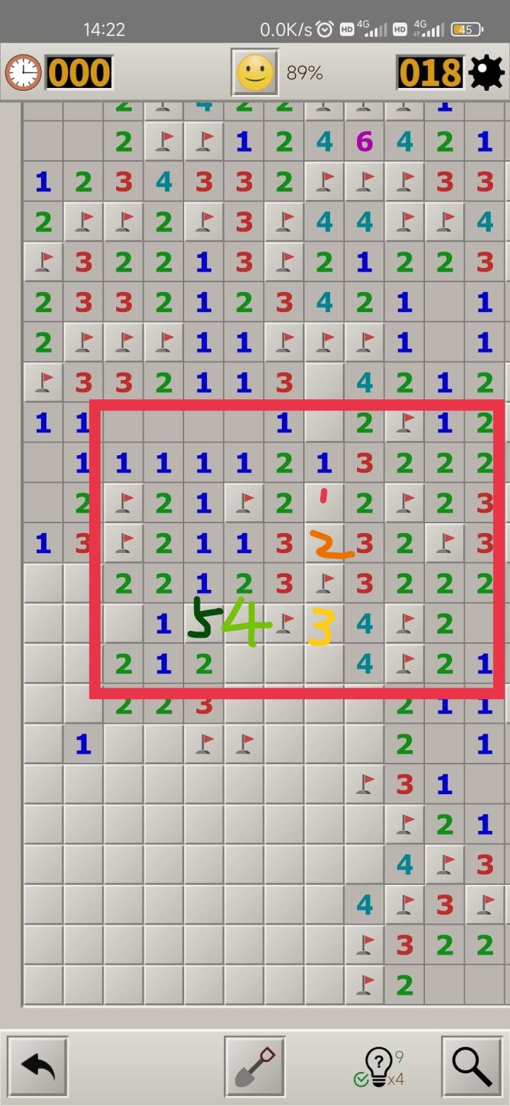 1位置不是雷,那2位置得是雷,3,4位置不是雷