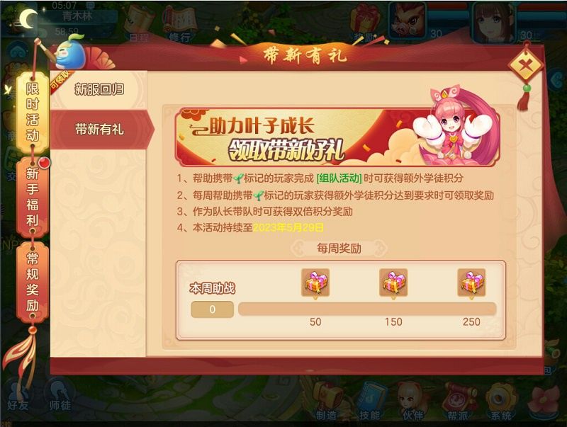 1)日常副本新增副本礼袋奖励,服务器等级≥50级时,每周完成16次日常副本可在副本界面领取奖励;