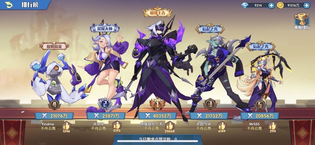 然后输出和辅助自己看着带,最好是有一只奥兰多或者温蒂,打到这里的玩家应该大部分都有了吧?