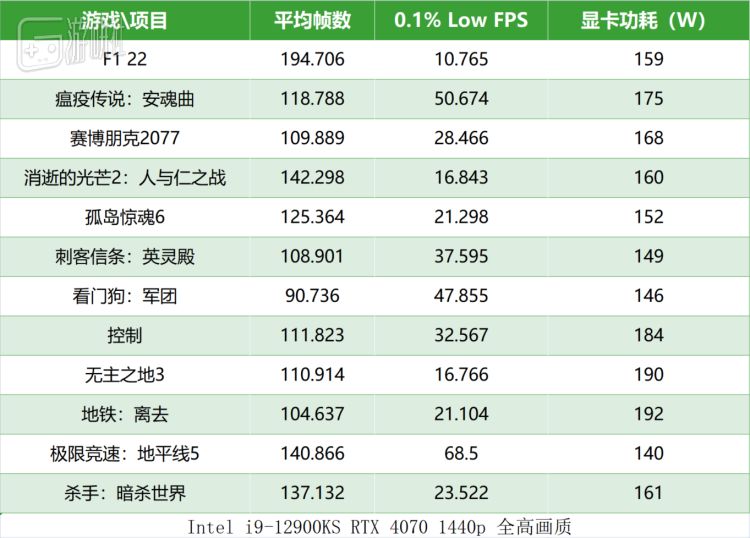 RTX 4070游戏帧数表现优秀,而功耗较低
