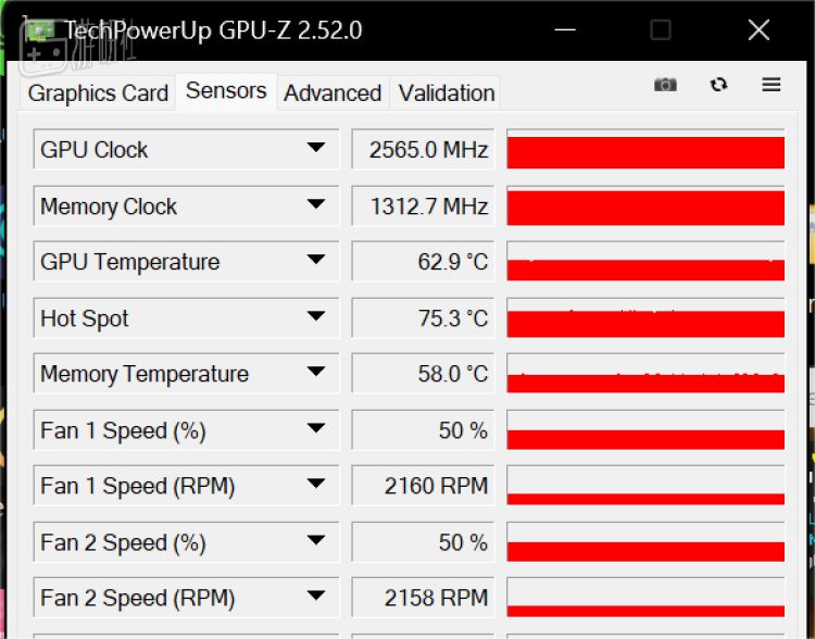 核心与显存温度良好,风扇转速不高,比较安静