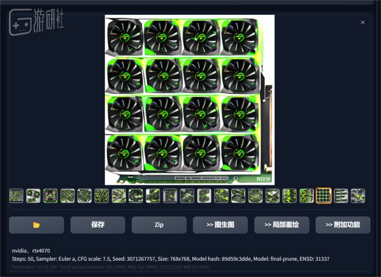 VSR的效果非常惊艳,越来越多像它这样的AI在进入我们的日常生活,不断有便利的新软件、模型被开发训练出来,各种功能层出不穷;Stable Diffusion就是其中之一,它是一款基于图像处理的AI模型,能让用户轻松地将文本描述或者几个关键词转化为复杂的视觉表现,并且Stable Diffusion AI利用GPU加速,可以获得极高的输出速度,我们也迫不及待的用手中的RTX 4070跑了跑这款AI模型: