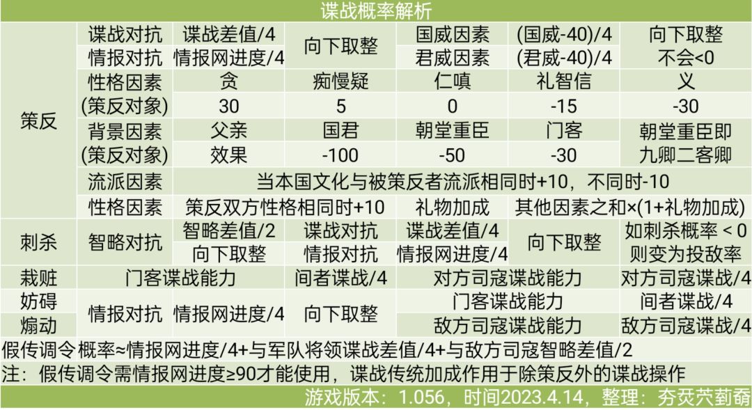假传调令游戏内没给具体概率,测试概率时每组50次共5组,认为公式是比较准确的,可能与实际有出入,欢迎指正。
