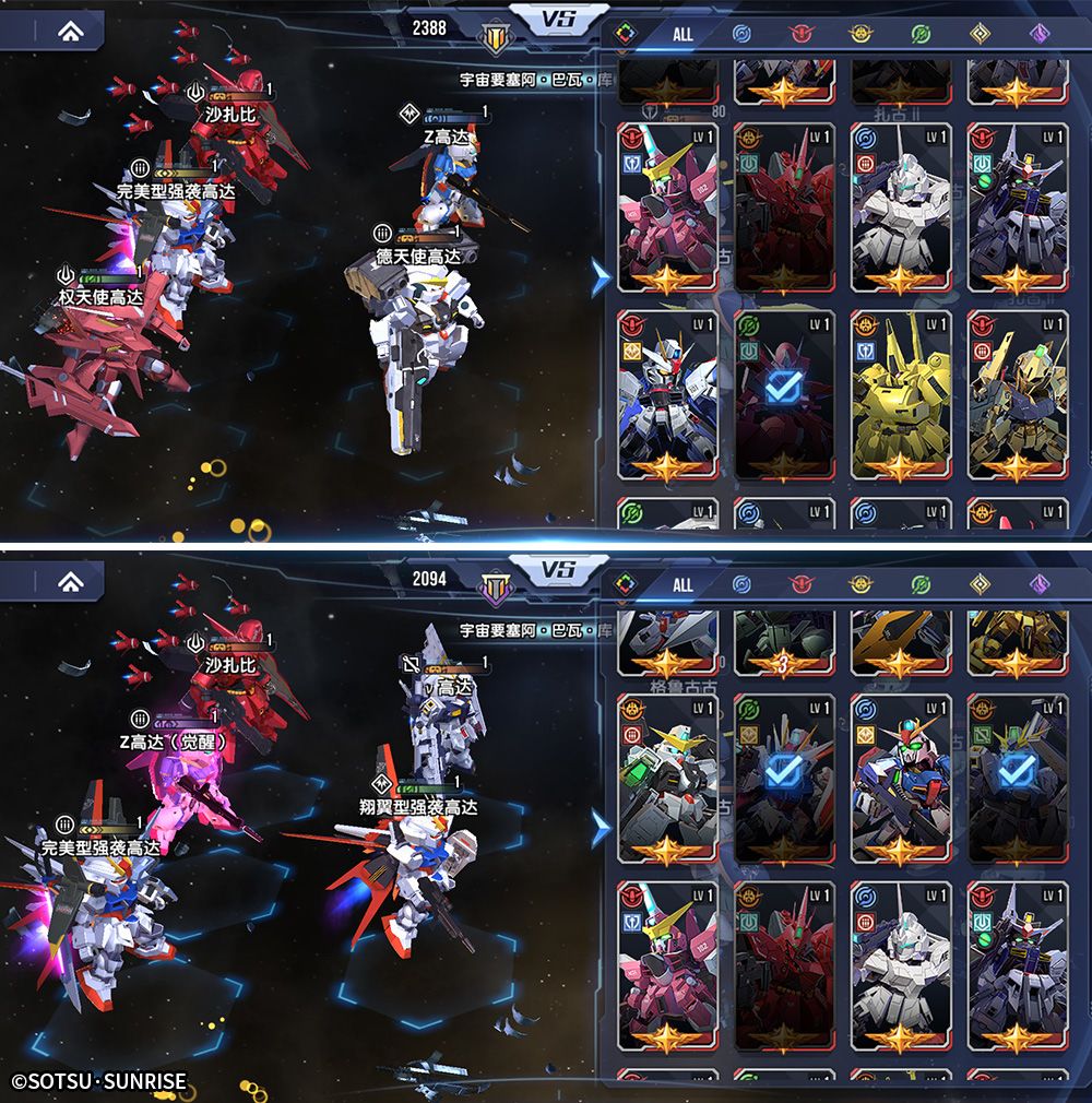 如果两台SSS均获得的情况下,不妨尝试下以下阵容:自由高达(SEED爆发)、完美型强袭高达、外加全装甲ZZ高达、独角兽高达(NT-D)和Z高达(觉醒),搭配效果期待您的本次测试体验!