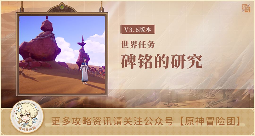 大家好呀,本期给大家带来的是3.6版本,苍漠囿土中的世界任务:碑铭的研究