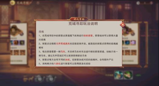 在荒域寻踪中的探索点派遣麾下武将进行挂机探索,探索结束可以获得大量的战魂!