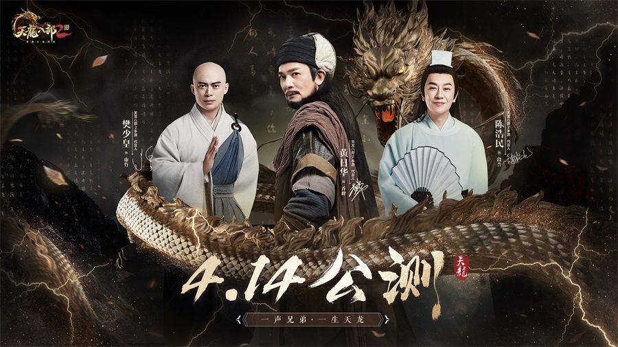 《天龙八部2:飞龙战天》手游携手黄日华、樊少皇、陈浩民三兄弟开启公测狂欢,代言人集体入驻原著经典江湖!以兄弟之名见证江湖新生,“乔峰”黄日华会选择何种职业?“虚竹”樊少皇能否守卫珍珑棋局?“段誉”陈浩民又将触发怎样的奇遇,更多精彩明日揭晓!