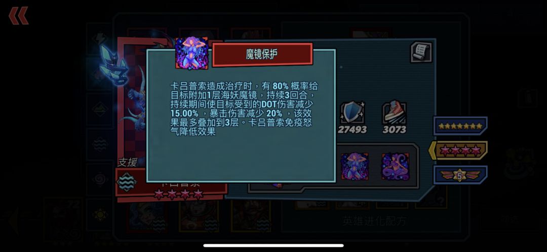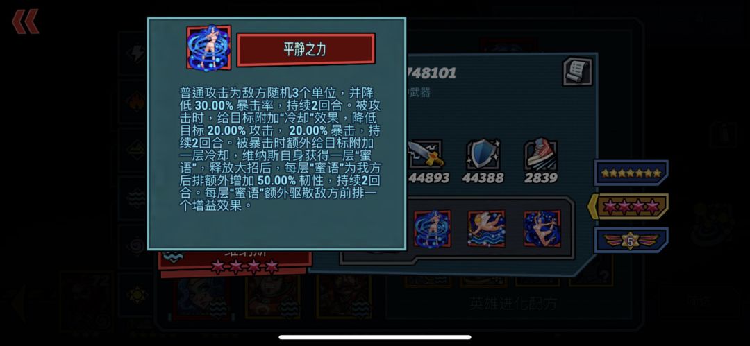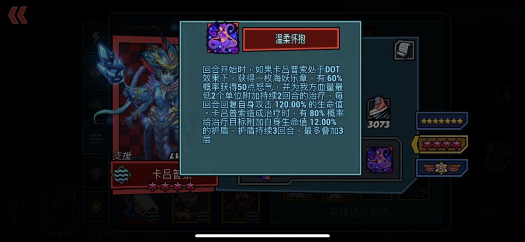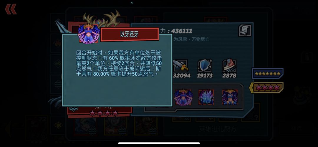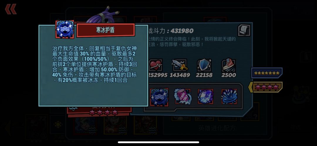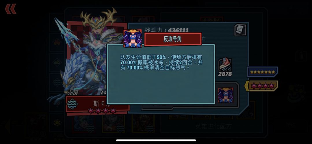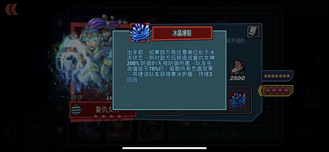 复仇女神:虽然没有伤害,没有高概率的强控,但复仇却是个极强的辅助。只要冰盾触发,被冰盾保护的单位很难被同级别的对手秒杀。10星出关键技能效果,建议10星以上。