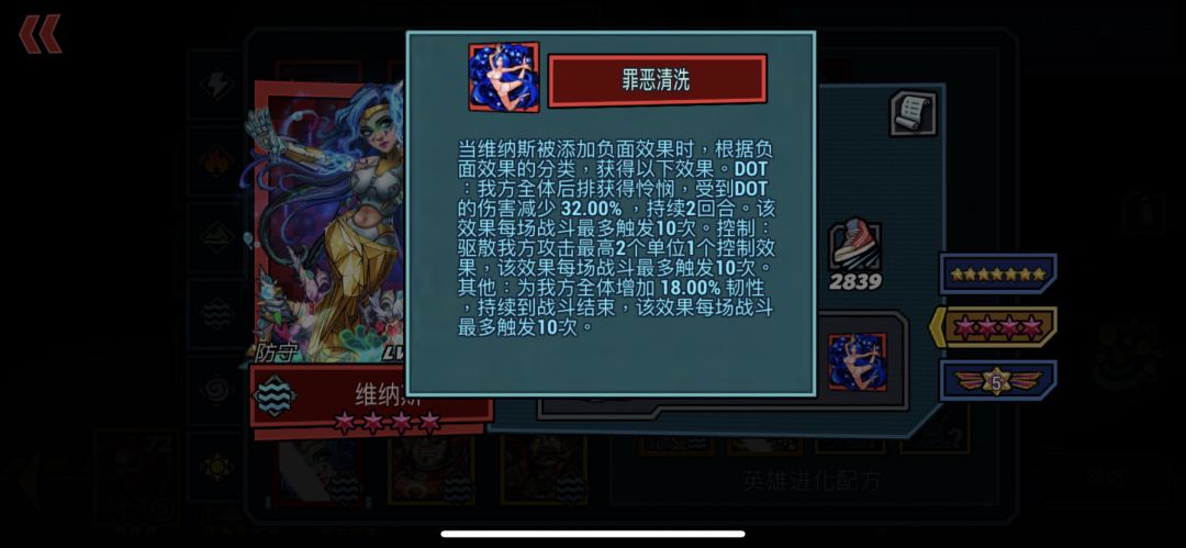 维纳斯:全方位提升全队的肉度。有效克制暴击伤害和dot伤害(2个伤害均为当前版本主流伤害)。2技能和4技能让维纳斯无论挨打还是被控制都能同时增益己方全队。建议10星起步。