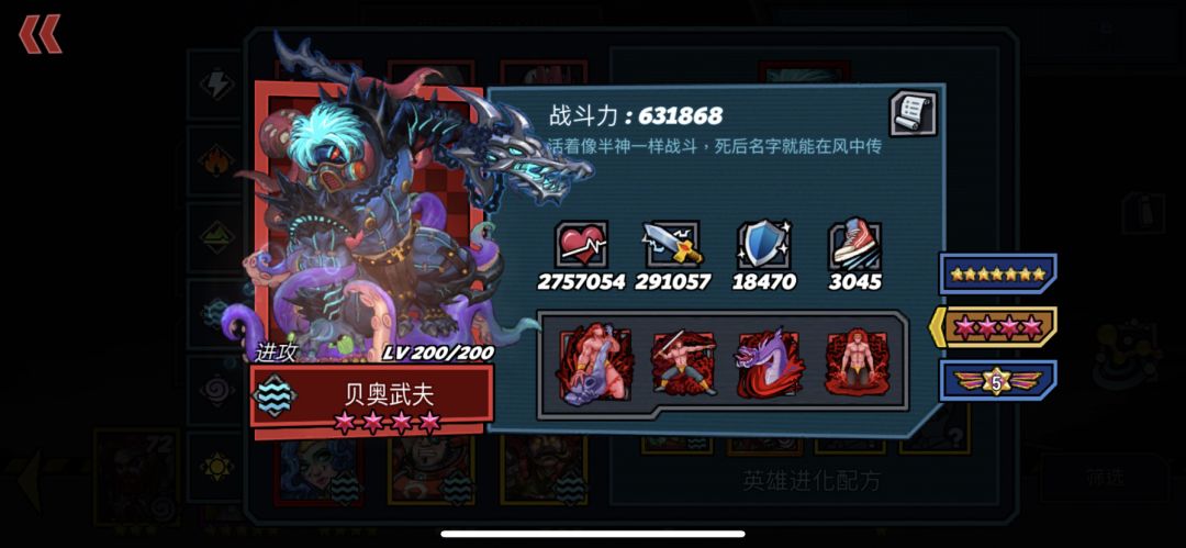 贝奥武夫(武夫):水系能和光暗系抗衡的主要原因。武夫作为水系c位,却有着如同光暗c位那般的输出能力。队友需要配置拥有水系debuff(冰冻、寒冷、减速)的队友。核心技能是4技能,只要武夫出了嗜血就没有砍不动的人(指同配置或者高一点配置的对手)。走水系的队伍必练武夫,星级越高越好。