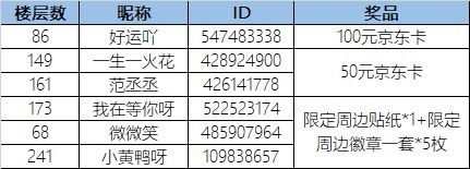 随机抽选2名勇者,送出:每人50元京东卡*1