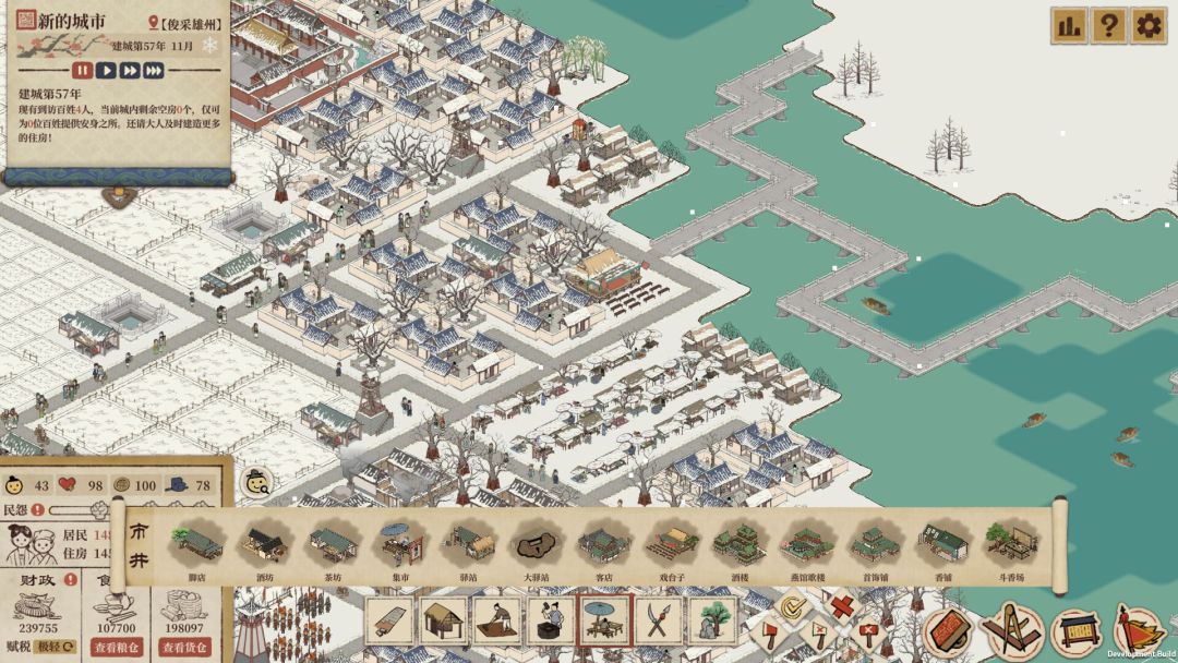 从路面的砖瓦铺设到庭前的花树,一草一木均是我们执笔画成,人口的调配各行各业数值的设计,我们进行了无数次的调试。但是,游戏目前还是一个抢先体验的状态,还会有很多有待完善之处,希望各位能够多多给我们提供反馈建议!让我们一起将这个大宋,做成理想中的桃花源。