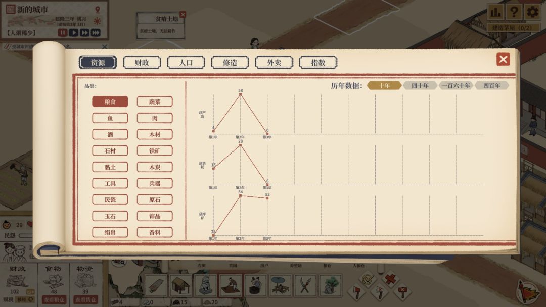 作为模拟经营游戏,最为基础的农业和采集业,皆需要人口的支撑。而修缮建筑、维持民生和公共设施的稳定运行,则脱离不开财政收入。不仅如此,游戏内还设计了数十种能够提高建筑收益的隐藏建筑物组合combo,等待玩家去发掘。此外,可以开启科举的学塾,可以祈福请神的佛寺道观,可以进行科技树升级的书院,详尽的年度发展报告等等,众多丰富的内容都在等你来体验!