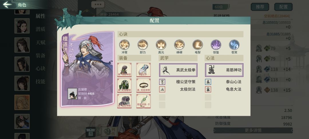 阵容方面跟传统恒山一样2保2,主力太极拳老谭,通玄桃花,藏渊师姐,霜月张少。
