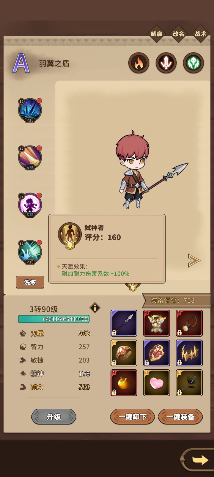 战士开荒攻略,先说说角色首先属性为王其次附加伤害,也就是说拿角色首先拿升级加属性天赋的角色其次就是你主属性附加伤害天赋的角色。