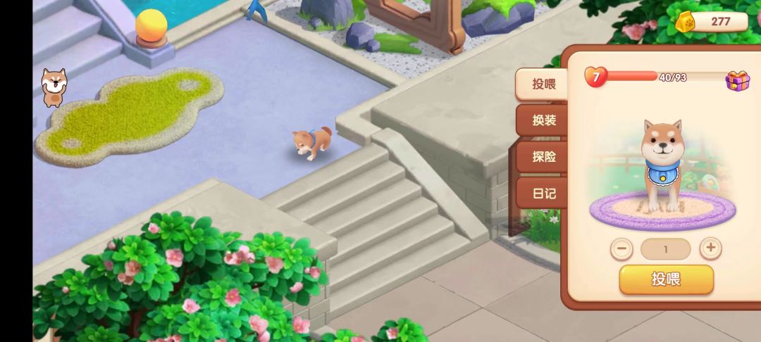 在消除关卡通关后会获得狗粮,狗粮可以投喂给小H提升亲密度,每一级亲密度可以领取到不同的小奖励,比如小H的装饰、游戏道具以及金币,为创造师通关和日常经营提供了帮助。