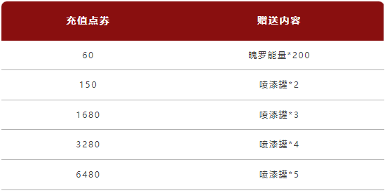 (1)花费1个“喷漆罐”进行一次喷漆,可随机获得数量不同、类型不同的兑换券;