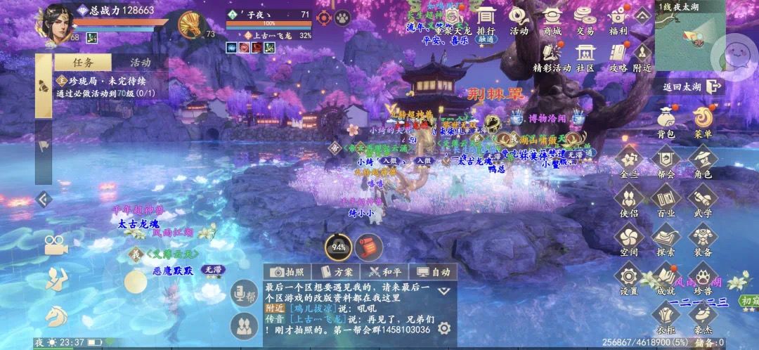 在内测结束的最后一天,大家不约而同的放下手中的副本,全部集中至夜西湖,放下了彼此的恩怨,放下了帮会的恩怨,静待几个小时关服,在11:59分的时候,大家不约而同的开始世界发送“拜拜”“后会有期”“公测见”等等(好失败,没截到图),刷屏一分钟,最后的最后大家全部选择了默默不情愿的离开