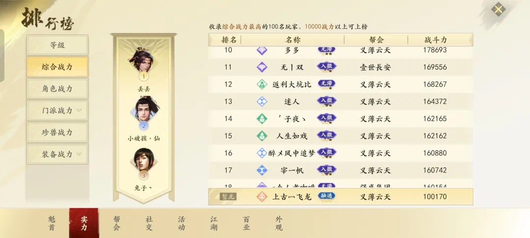 你们的支持,就是我唯一的动力,认识你们是我的荣誉。感谢遇到你们,成就了第一帮派!从此第一帮派就是我们了,有个兄弟老在世界上说:以后这个区掉下来了个钢镚都是我们义薄云天的,我看了会心一笑。也感谢友敌荒天帝 小破孩! 无兄弟,不游戏!认识你们就是我的缘分!