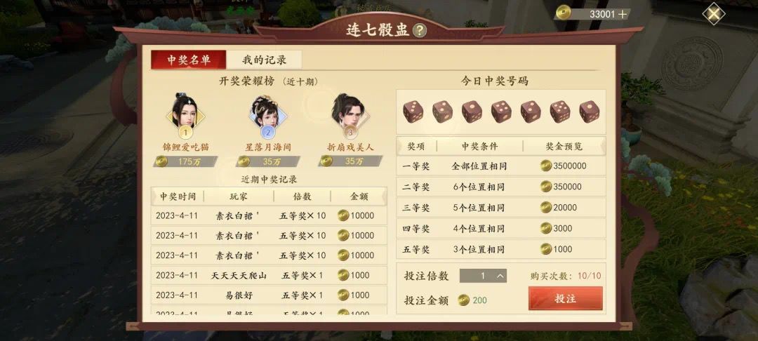 从来不中奖的我,在关服前竟然中了三个五等奖~