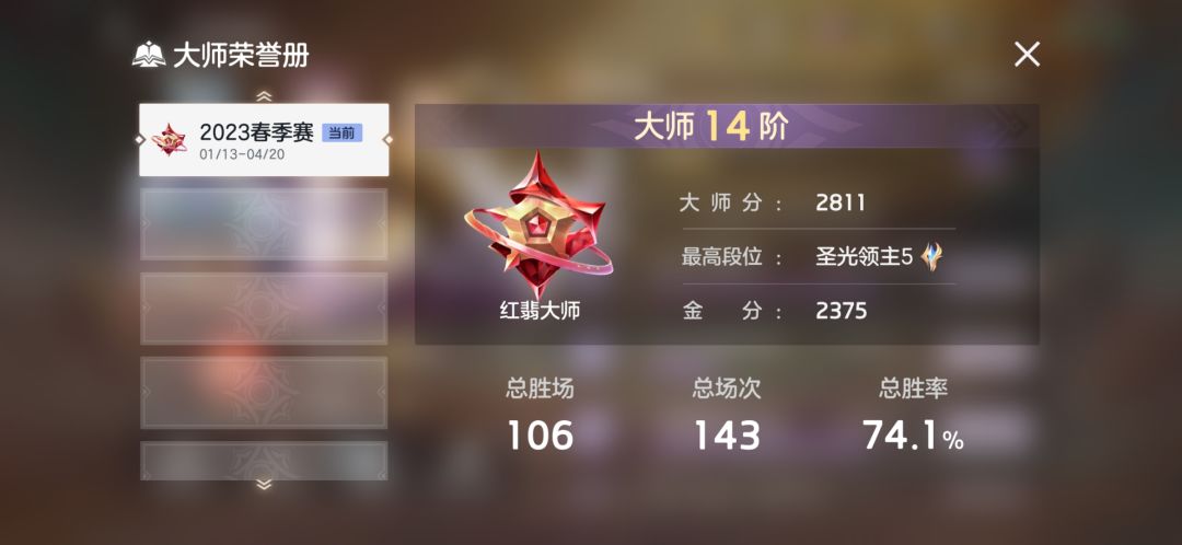 7天单排“圣光领主”我感觉20号之前能上主宰段位,“实话实说比王者简单”还有打英雄国标也挺简单的,“除了诸葛亮的”因为太费手指打一局很累。