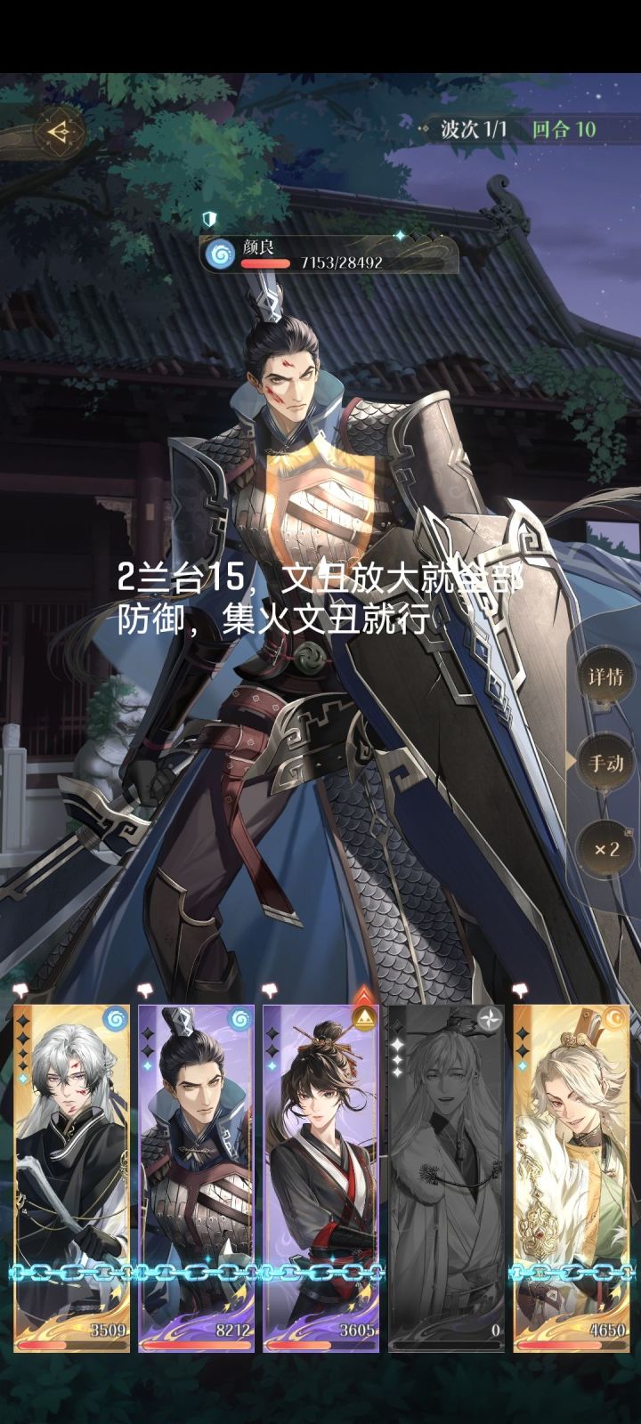 2-25陈登,王璨,颜良,狮子喵,白虎,磨死慢慢磨,两个盾技能错开放就行,王璨有就可以放