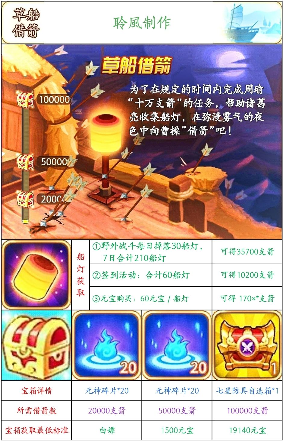 历史价格最低的草船借箭,七星防具在向你招手。更有元宝累消转盘活动并驾齐驱,一份付出,双倍快乐,需要集齐七星套装的主公们可以考虑入手了哦~