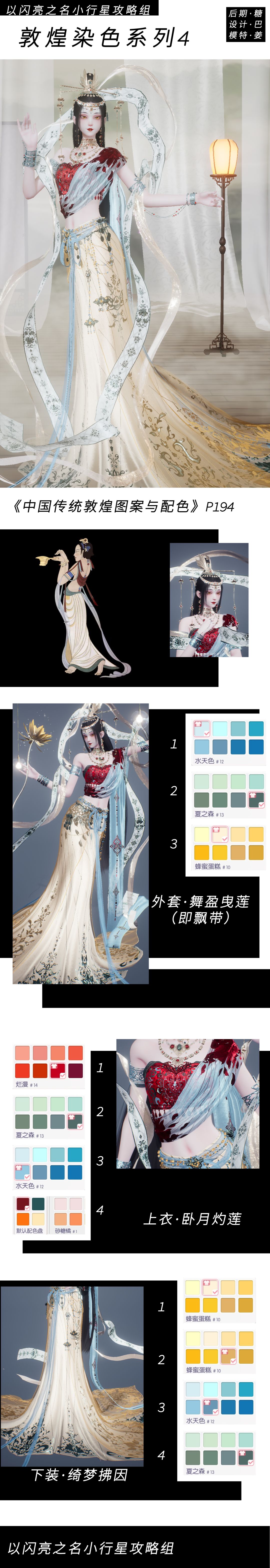卧月灼莲套装的原始配色使用了大家熟悉的经典敦煌配色。