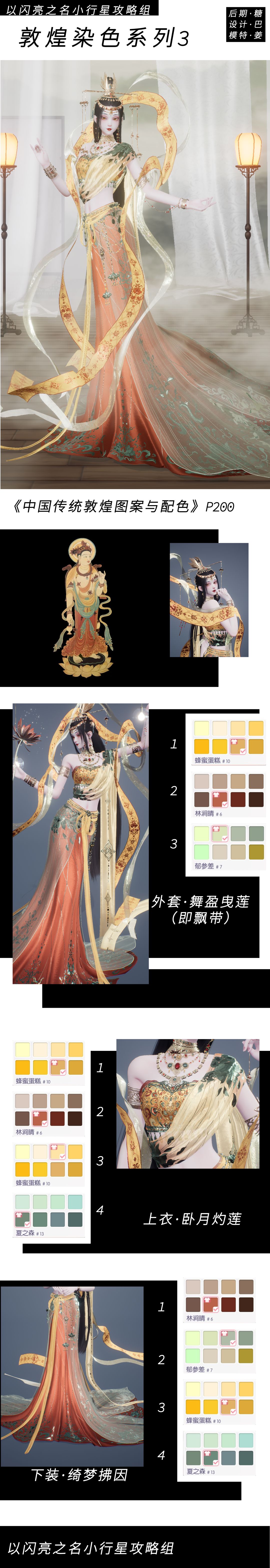 本期染色安利延续原始配色对敦煌配色的借鉴参考,选用了另外几种相对“小众”的敦煌配色,希望能在安利染色的同时,也让敦煌配色的更多面被更多人了解~