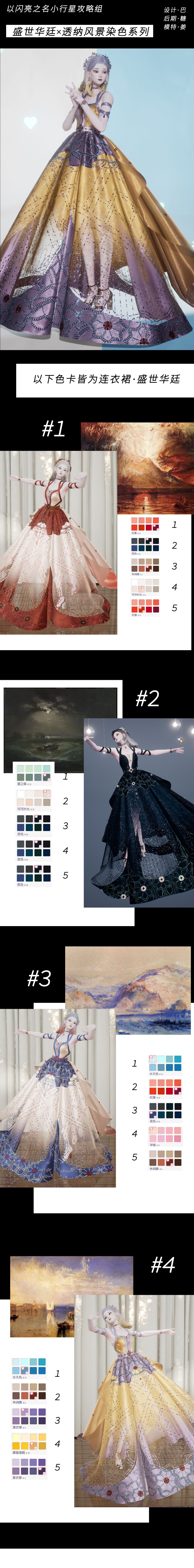 这套欧式礼服的染色我们以杰出的风景画家——Joseph Marroad William Turner(中字简称透纳)的作品为借鉴对象,本次选取了4幅作品。当然,染色无法完全还原作的细腻笔触和惊艳色彩,但艺术无界,愿我们都成为能够自由感知和传递美的人~
